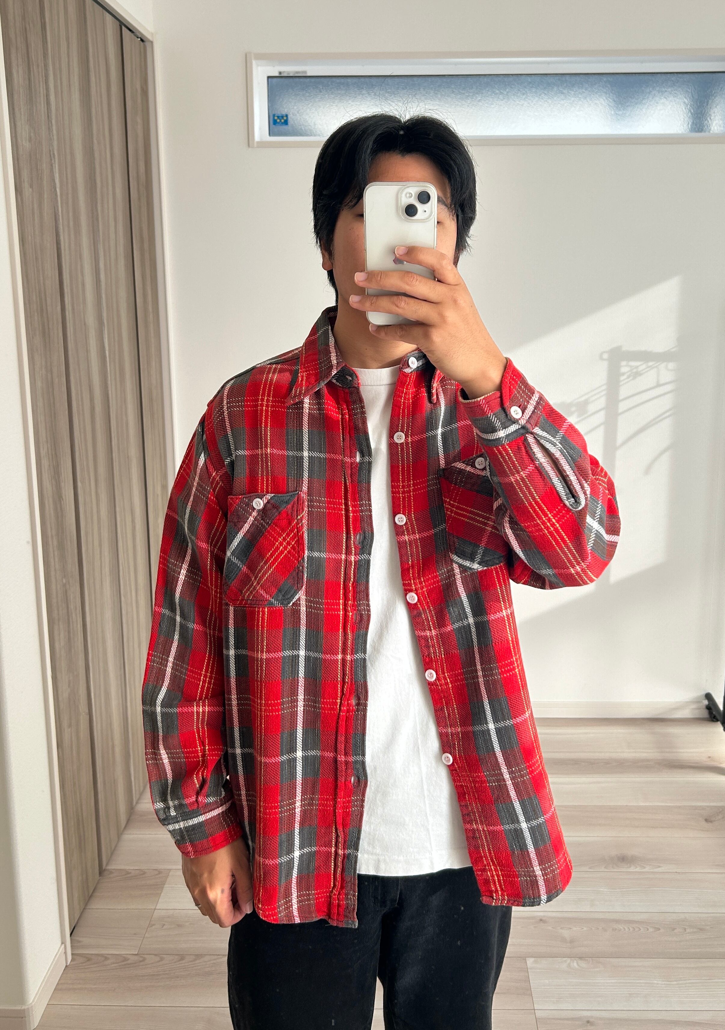 70's winter king HEAVY FLANNEL SHIRT RED L