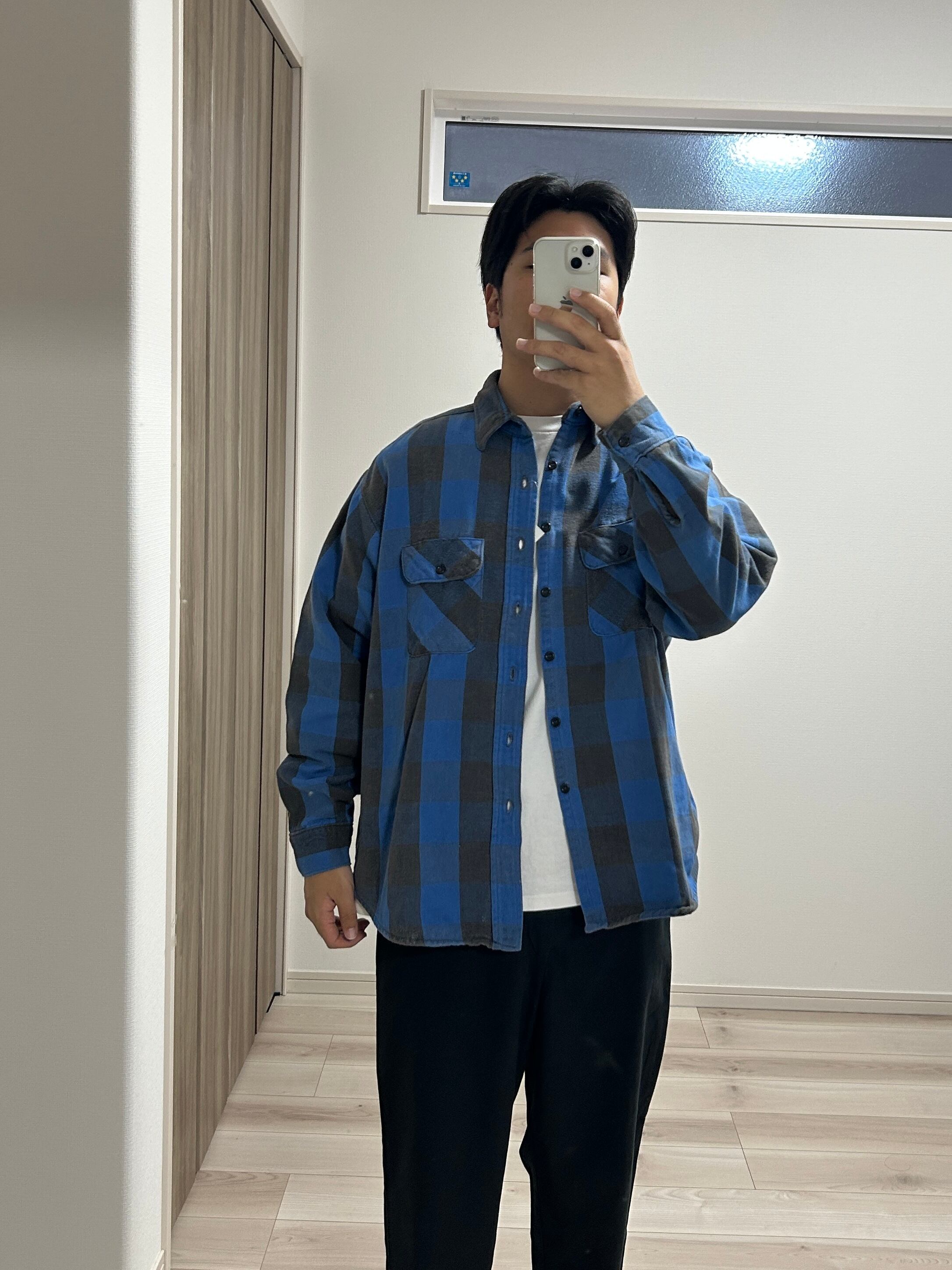80's FIVE BROTHER FLANNEL SHIRT 青黒XL