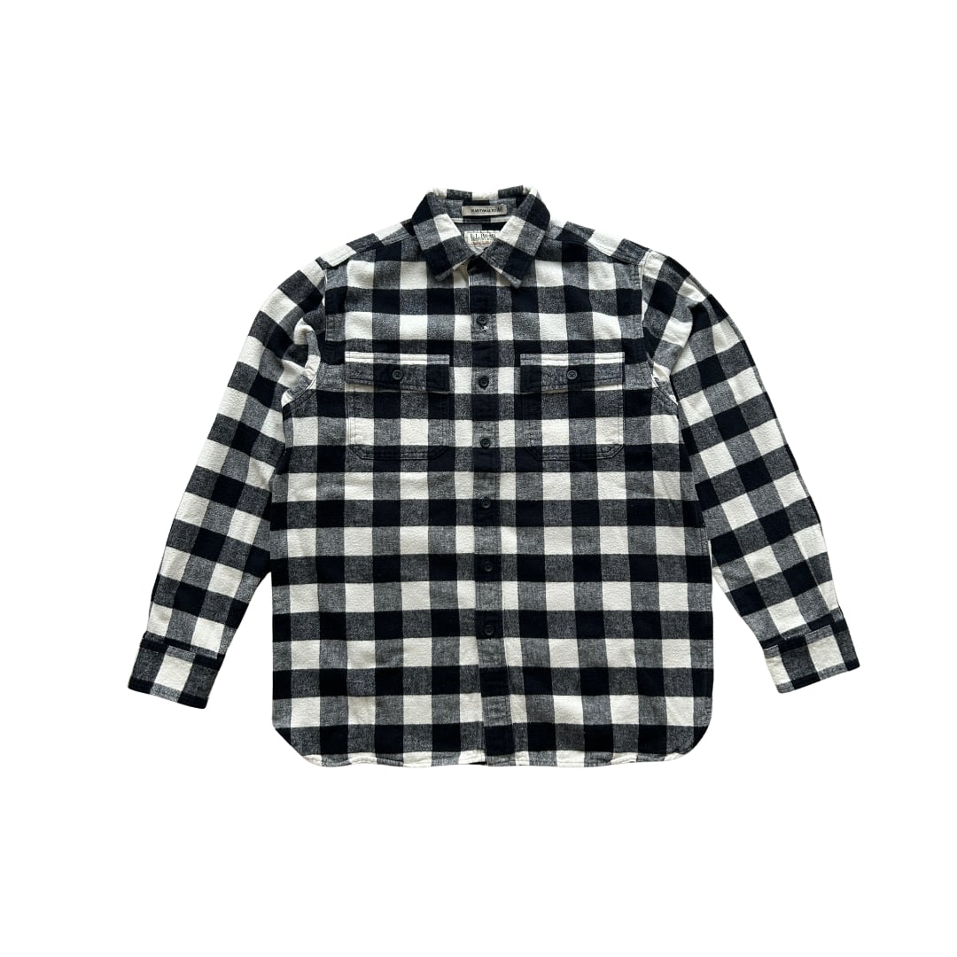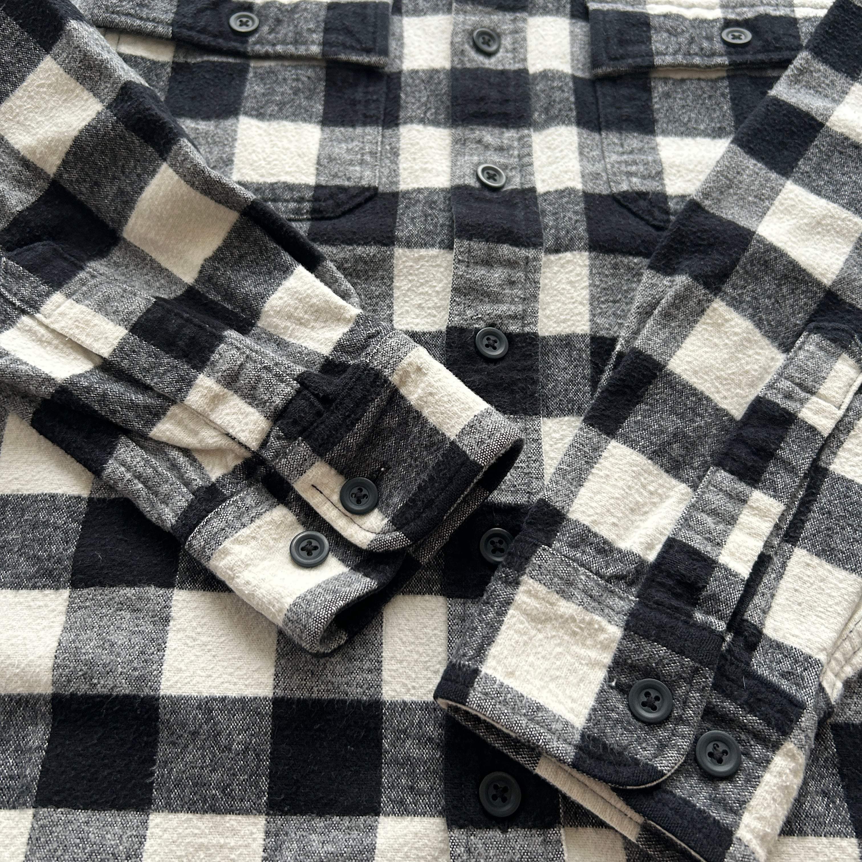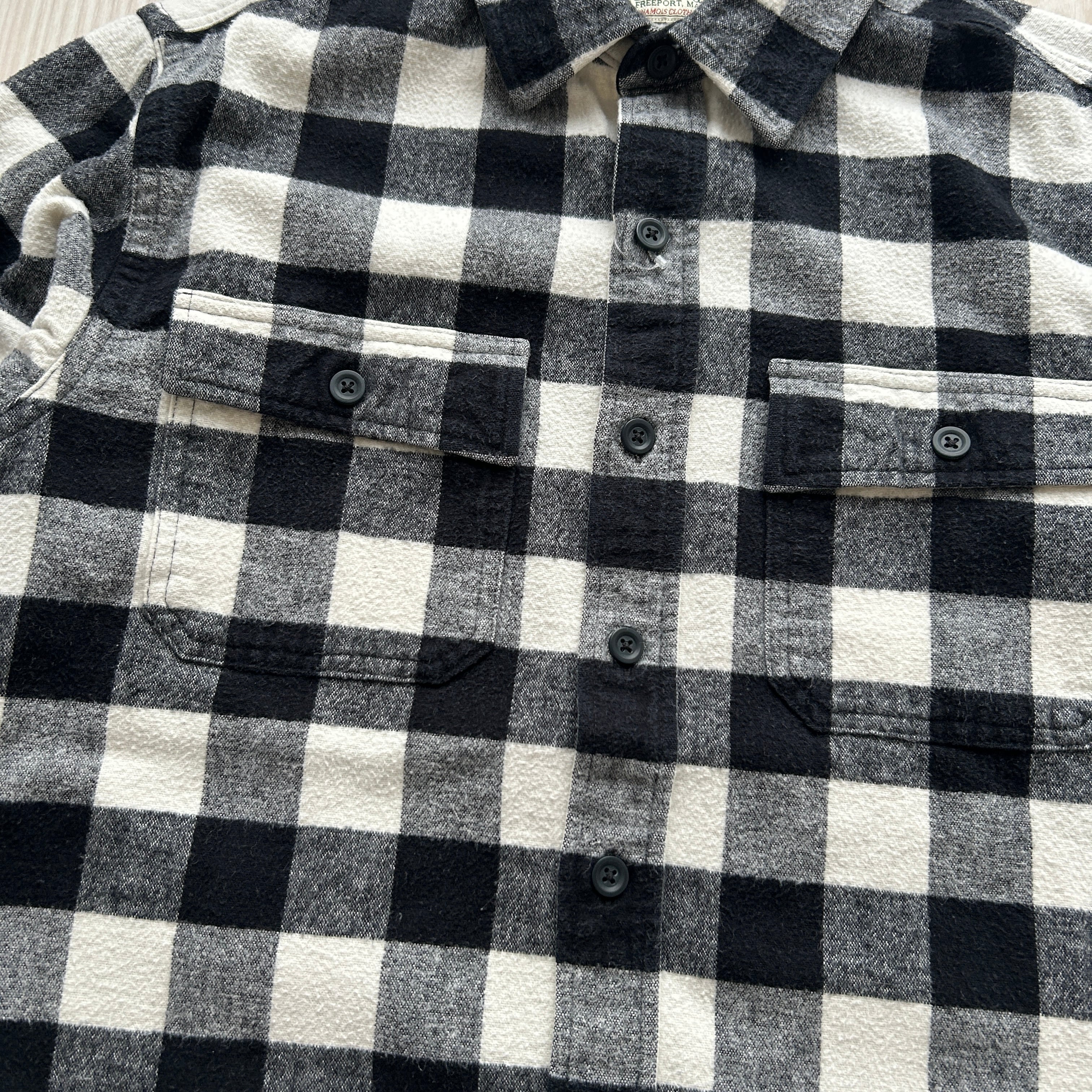 古くはないですが、白黒のブラックチェックでシャモアクロスといういい古着。